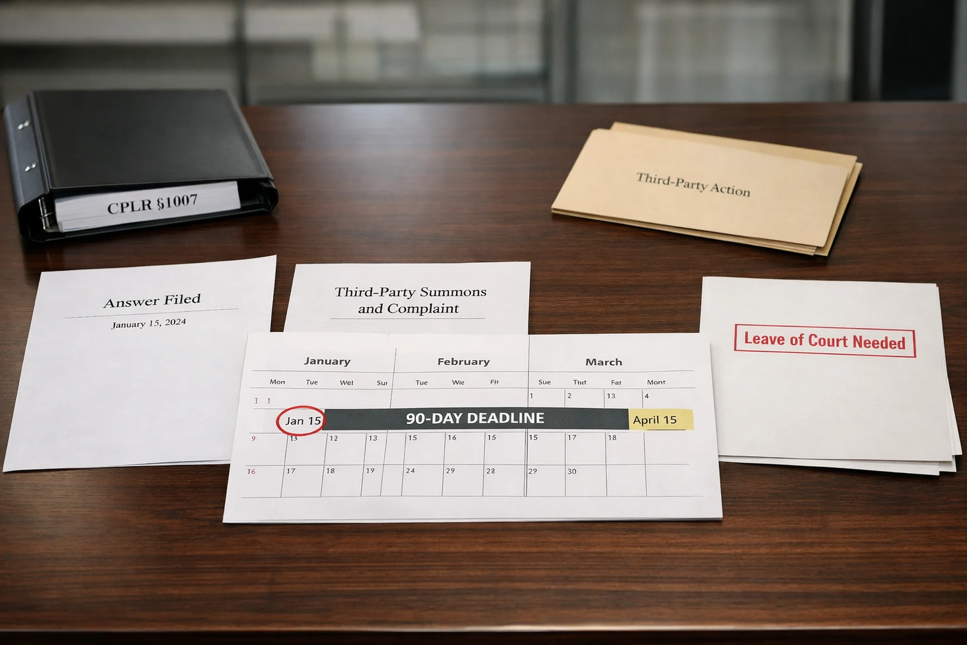 Third-party practice, often called impleader, allows a defendant to bring another person or company into a lawsuit and argue that the new party should pay for all or part of the plaintiff's damages. Before 2026, Civil Practice Law and Rules (CPLR) § 1007 allowed impleader after service of the answer but did not set a firm outside deadline. In practice, courts often focused on whether a late third-party claim would delay the case or unfairly prejudice the plaintiff. The Avoiding Vexatious Overuse of Impleading to Delay (AVOID) Act changes that structure. In general, a defendant now has ninety days after serving an answer to file a third-party summons and complaint without a court order. Claims against a plaintiff's employer follow a separate ninety-day rule tied to when the employer is identified or when a grave injury becomes known. The amended law also significantly limits filings made after the note of issue.